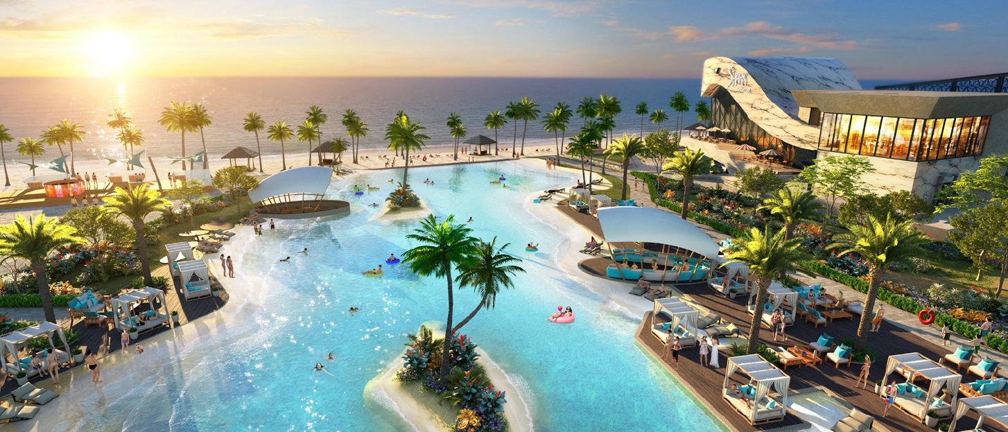 Hồ bơi nước mặn 5.000m2 tọa lạc ngay sát bờ biển. Hồ bơi đại dương được xây dựng dựa trên công nghệ Bios Design, sử dụng trực tiếp nguồn nước biển qua hệ thống lọc, mang đến trải nghiệm như một bãi biển thực thụ.