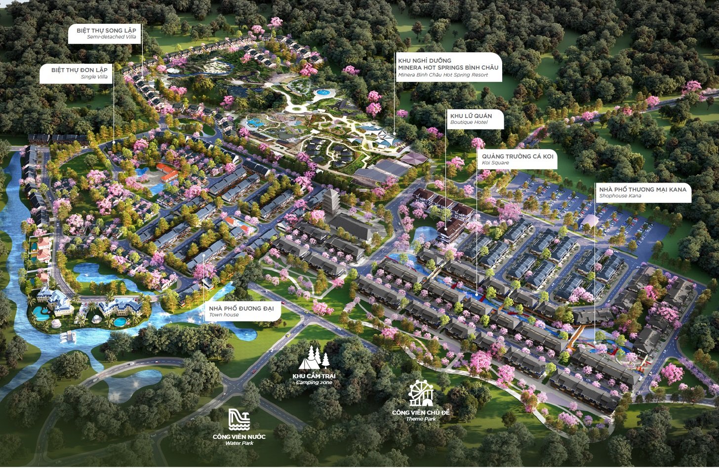 Lấy cảm hứng từ văn hóa, kiến trúc từ Nhật Bản cùng hệ thống mặt nước xuyên suốt và kết nối hoàn hảo, tạo nên một cộng đồng gắn kết, một không gian sống lý tưởng.